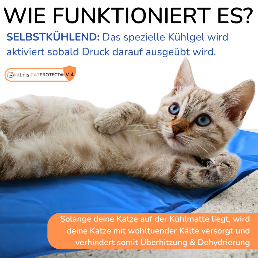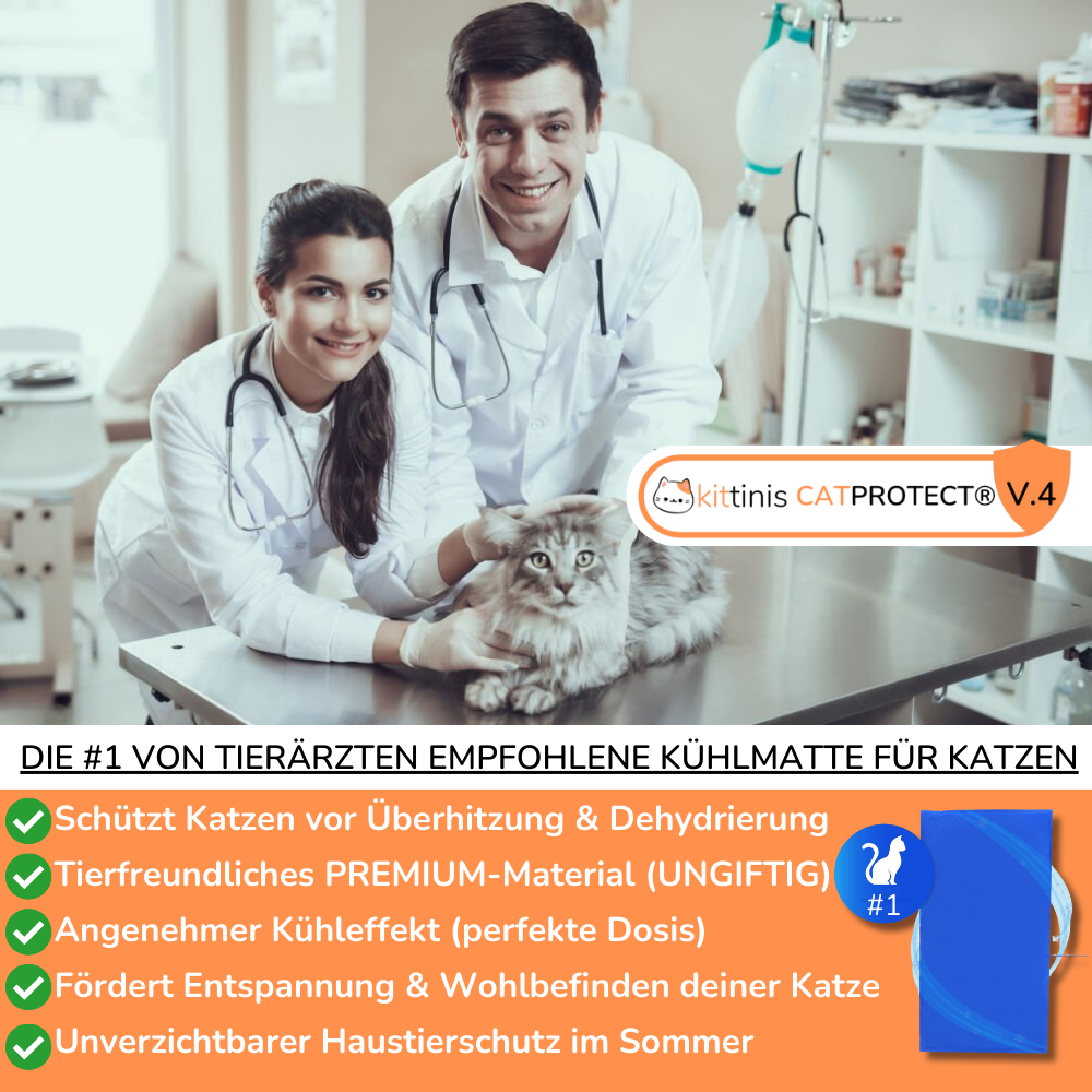 SCHÜTZE DEINE KATZE: Mit unserer CatProtect® V.4 - Premium Kühlmatte bringst du deiner Katze die nötige Abkühlung und Erfrischung an besonders warmen Sommertagen und verhinderst so Überhitzung, Dehydrierung, oder anderweitige gravierende Folgen der Sommerhitze, welche der Gesundheit deiner Katze massiv schaden würden!