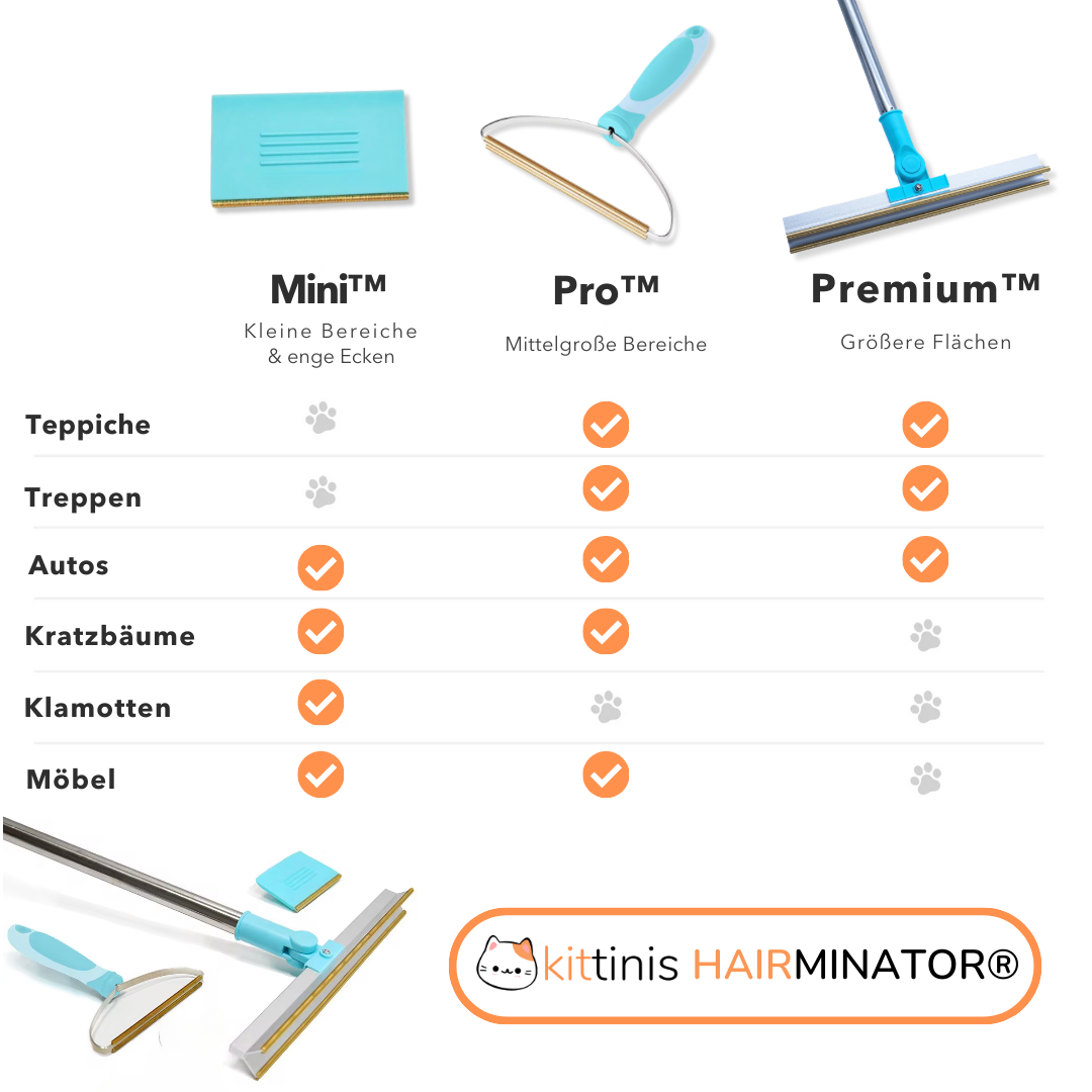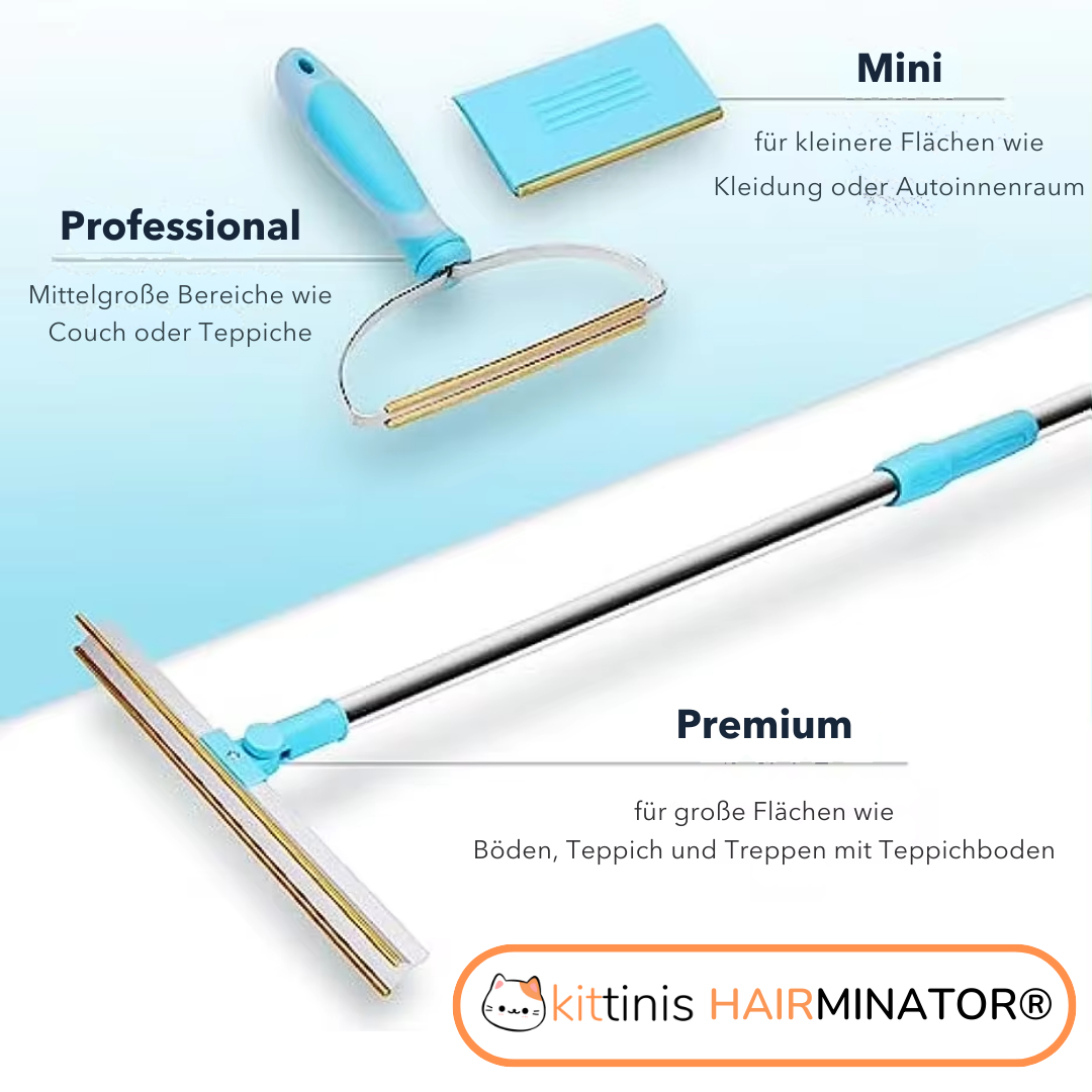 Mit dem HairMinator® - Anti Haar- und Fusselreiniger Professional + Mini + Premium Set bist du bestens gewappnet und für alle Einsatzgebiete perfekt ausgestattet. Das ist Tierhaarentfernung auf höchstem Niveau.
