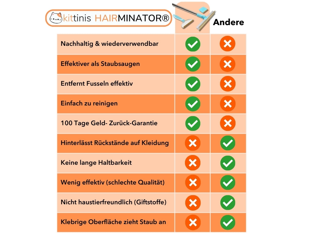 Mit dem HairMinator™️ Bundle gehören diese Probleme der Vergangenheit an! Unsere speziell entwickelten Werkzeuge entfernen effizient selbst die hartnäckigsten Haare von allen Oberflächen. Unser Bundle ist wiederverwendbar, umweltfreundlich und einfach in der Anwendung. So bleibt dein Zuhause sauber, ohne ständigen Aufwand.