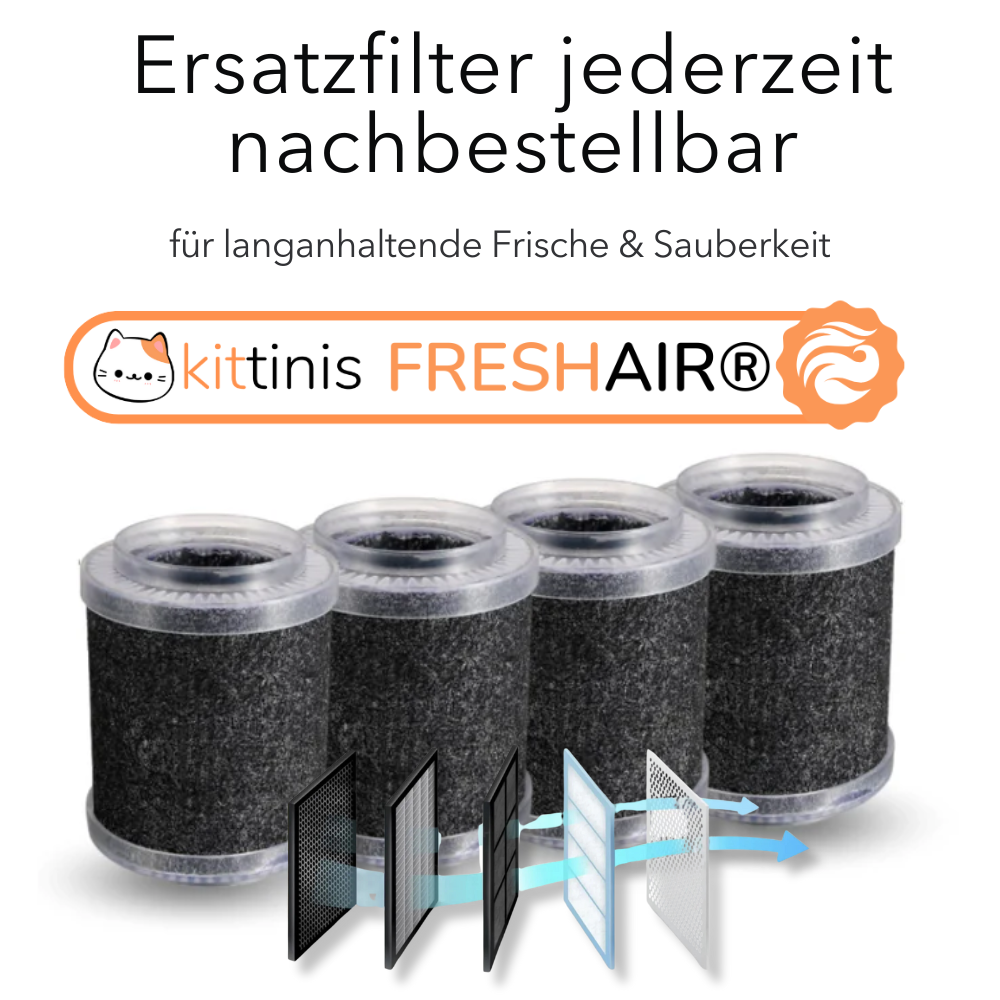 Der KITTINIS™️ - FRESHAIR® Tiergeruch Luftreiniger nutzt einen hochwertigen HEPA-Filter, der in nur wenigen Sekunden ausgetauscht werden kann. Für optimale Leistung empfehlen wir, den Filter je nach Nutzung alle 3 bis 4 Monate zu wechseln. Ersatzfilter sind nur online bei uns erhältlich und findest du hier.