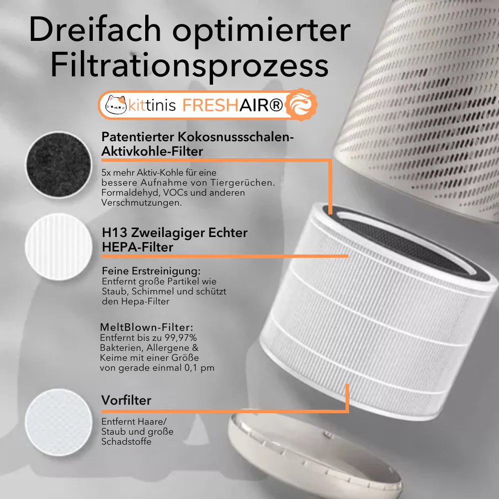 Der KITTINIS™️ - FRESHAIR® Tiergeruch Luftreiniger entfernt bis zu 99,97 % aller Schadstoffe aus der Luft!
