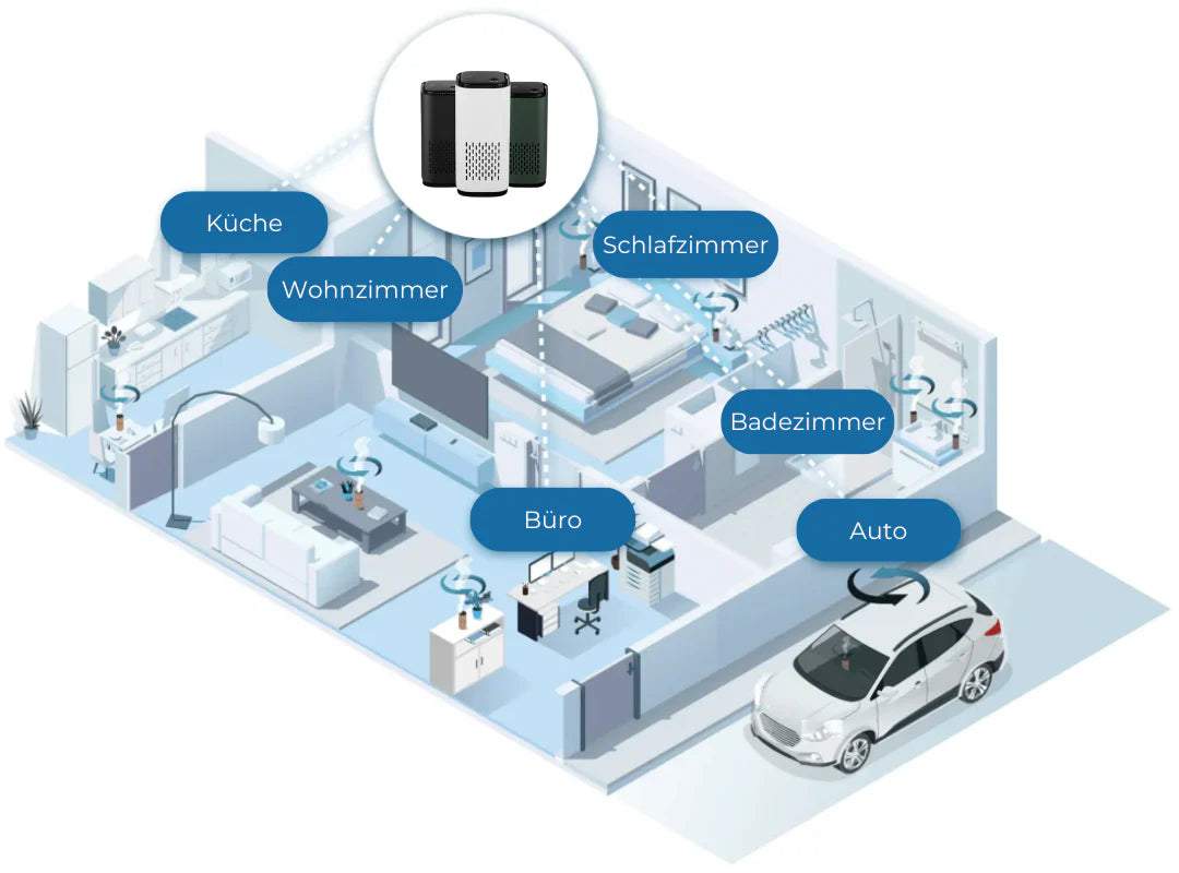 Effiziente Reinigung: Beseitigt bis zu 99,97 % aller Schadstoffe und Gerüche in der Luft.